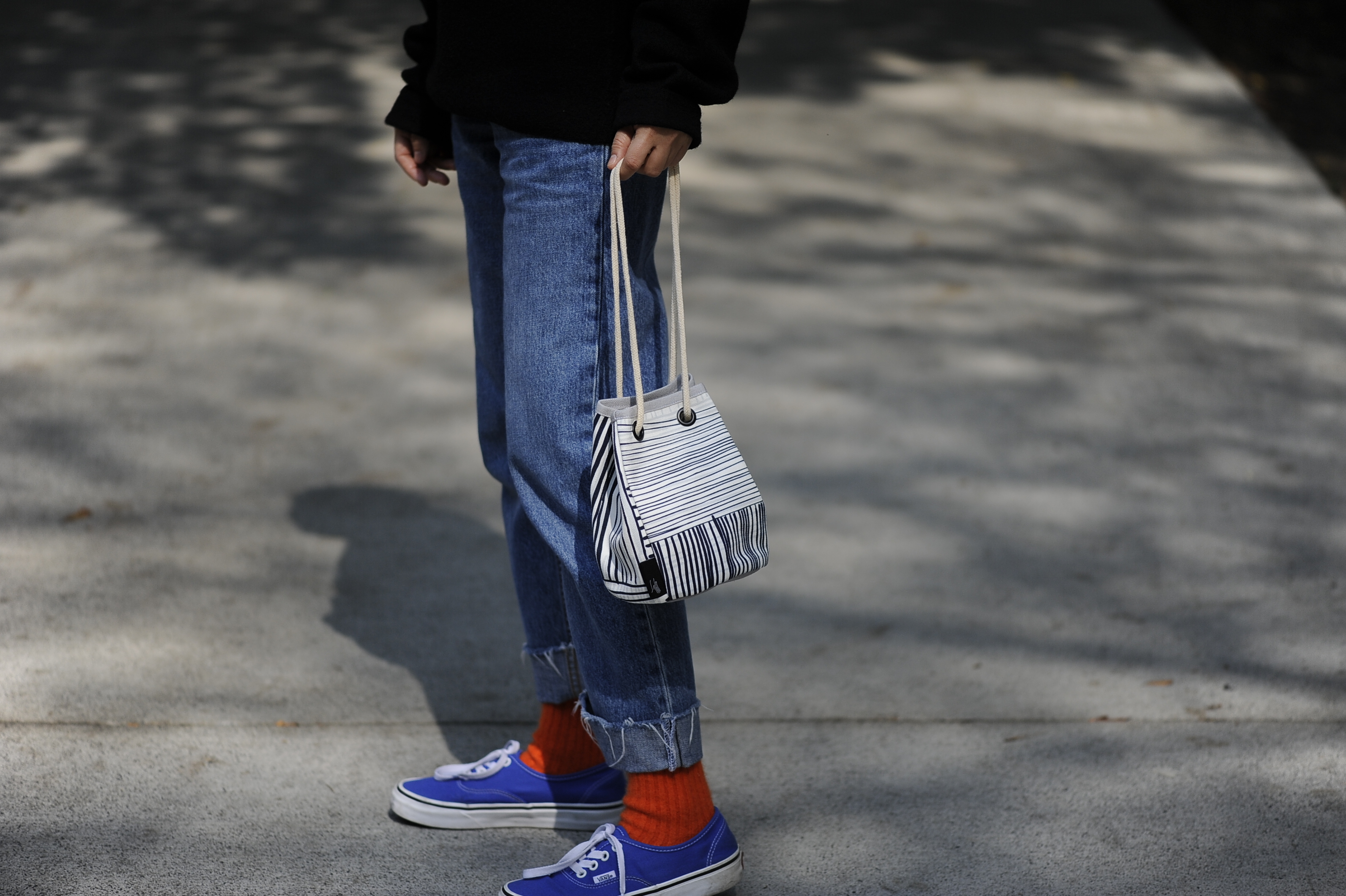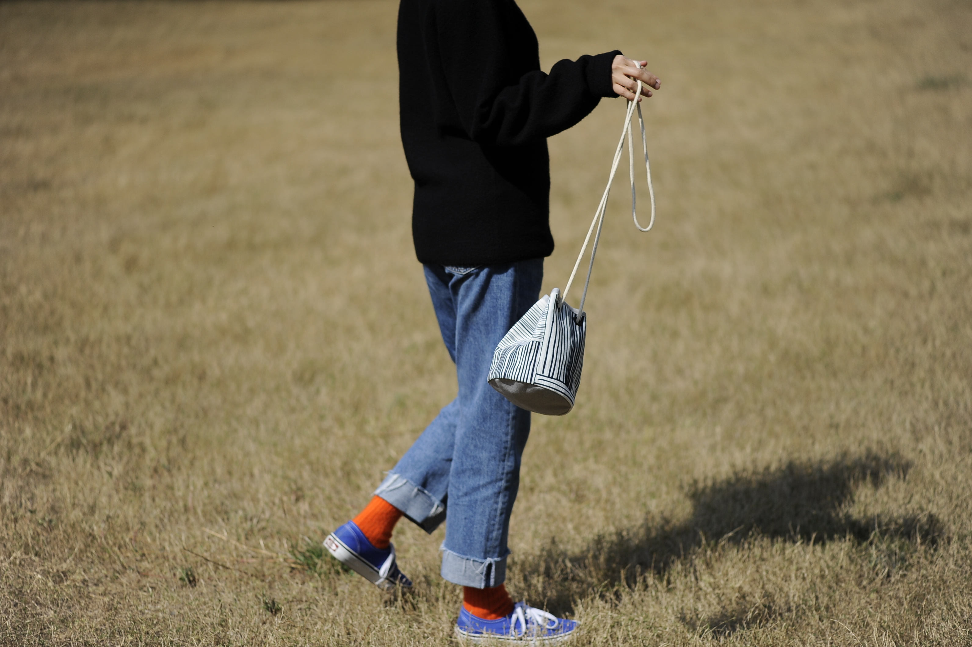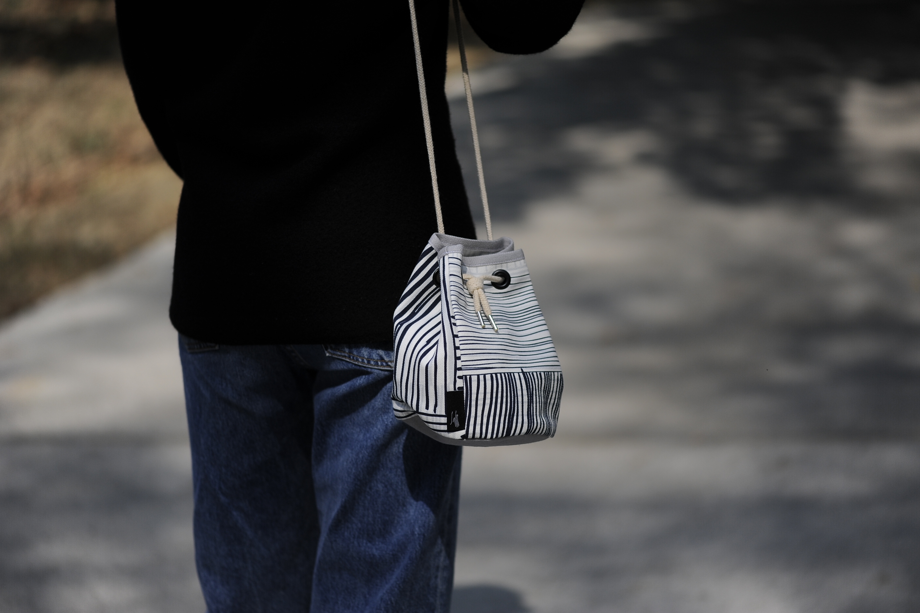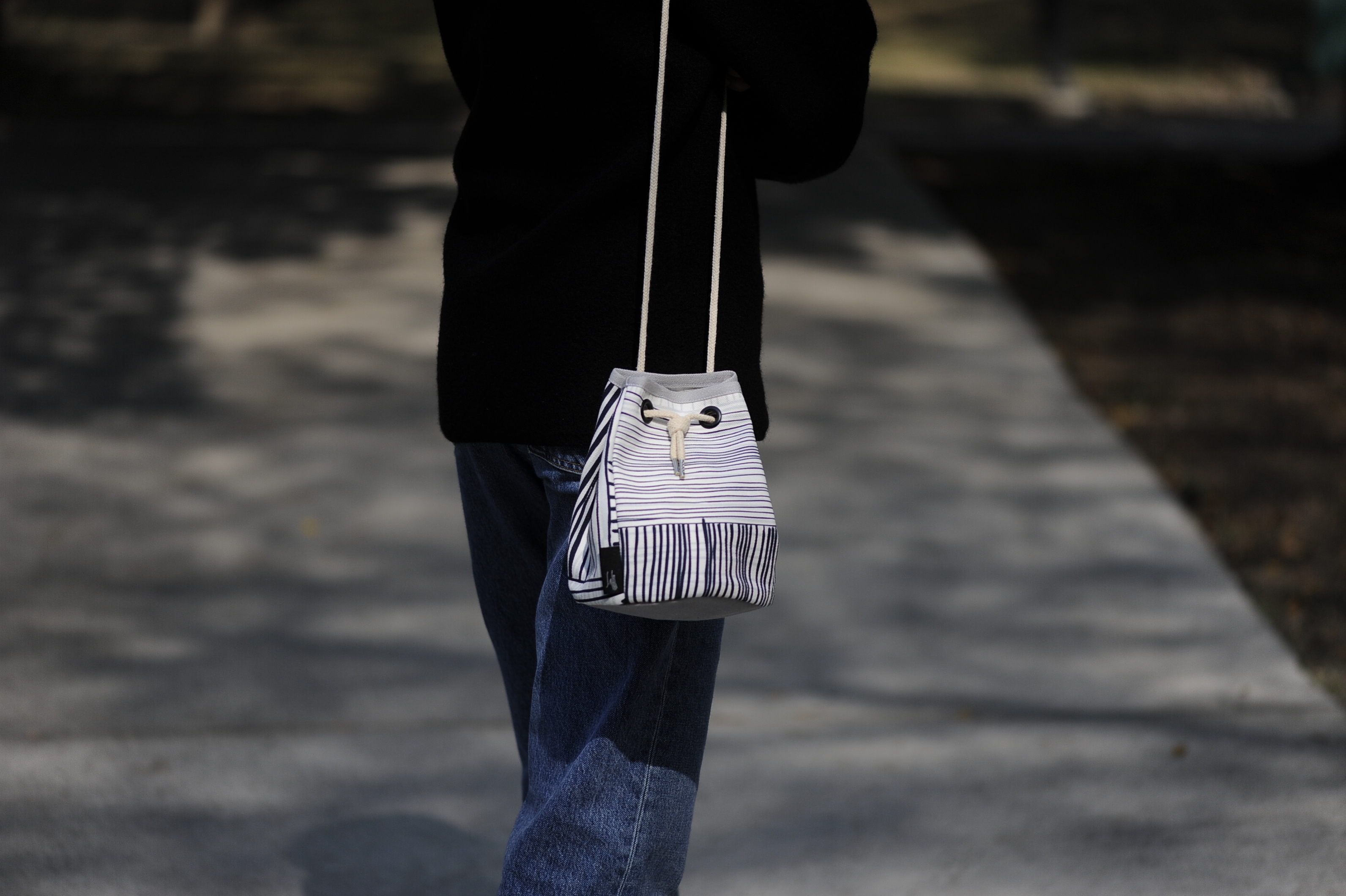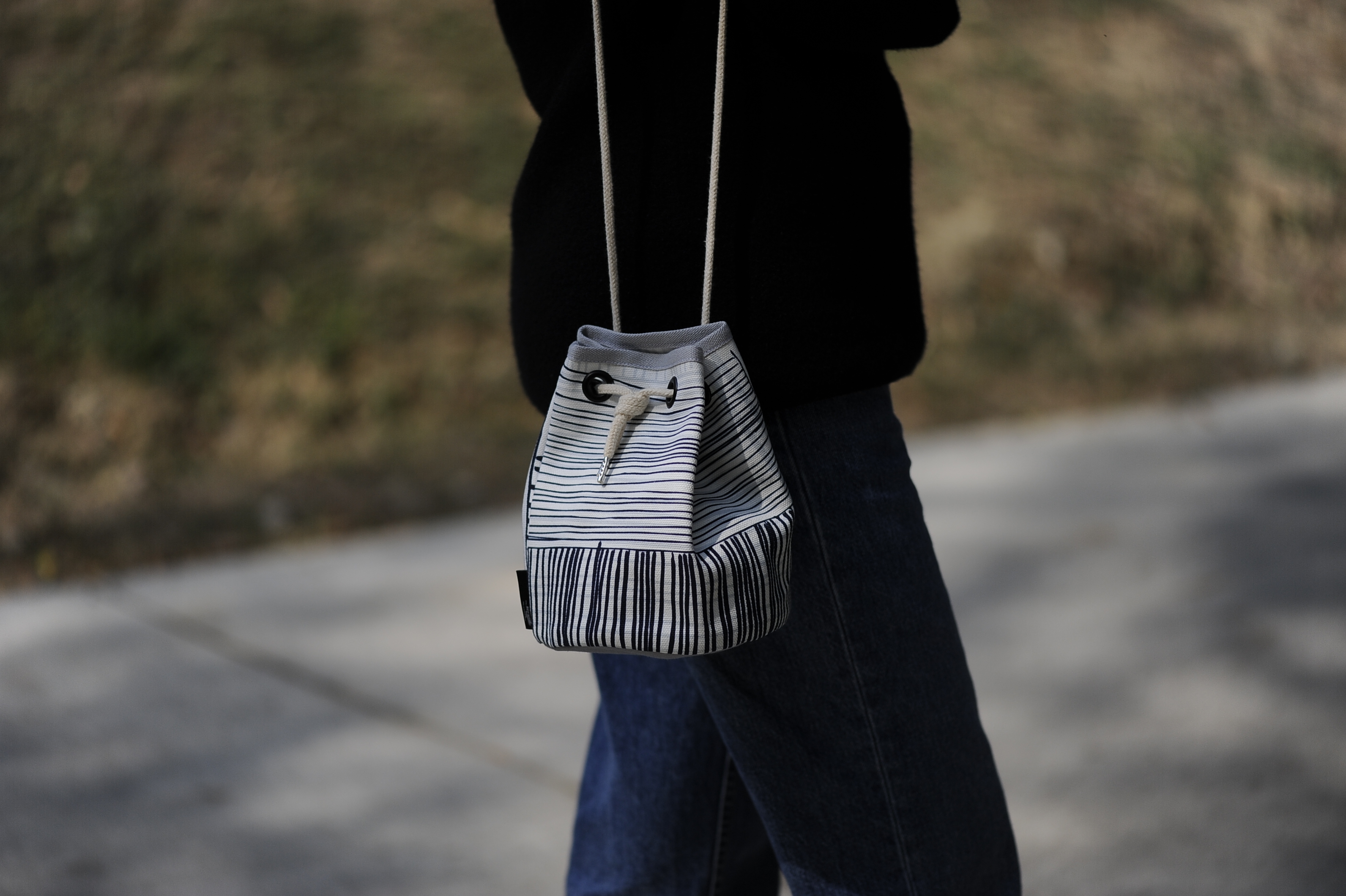 The simple drawstring bag design can be worn in various ways. Pulling the drawstring to one side creates a diagonal shoulder bag, while pulling both sides makes it a spirited side bag. It can carry essential items for walking your dog, freeing your hands stylishly while strolling with your furry friend.