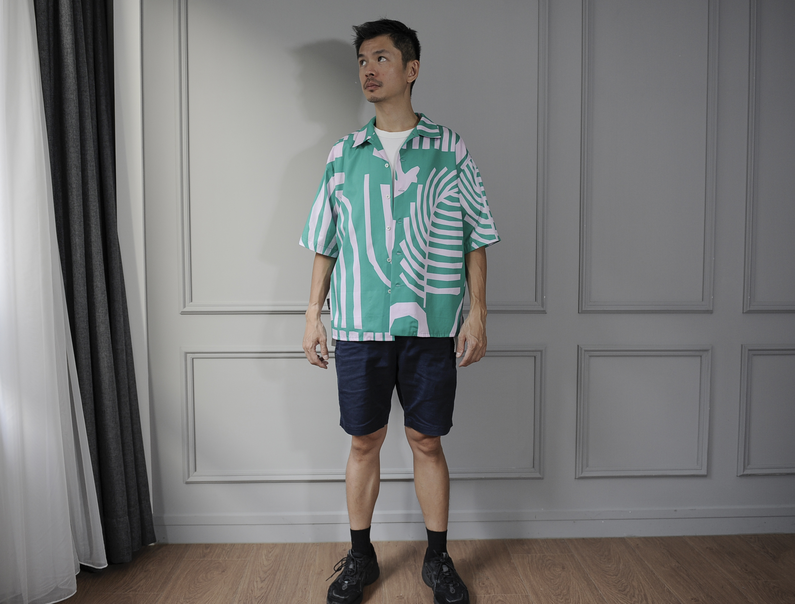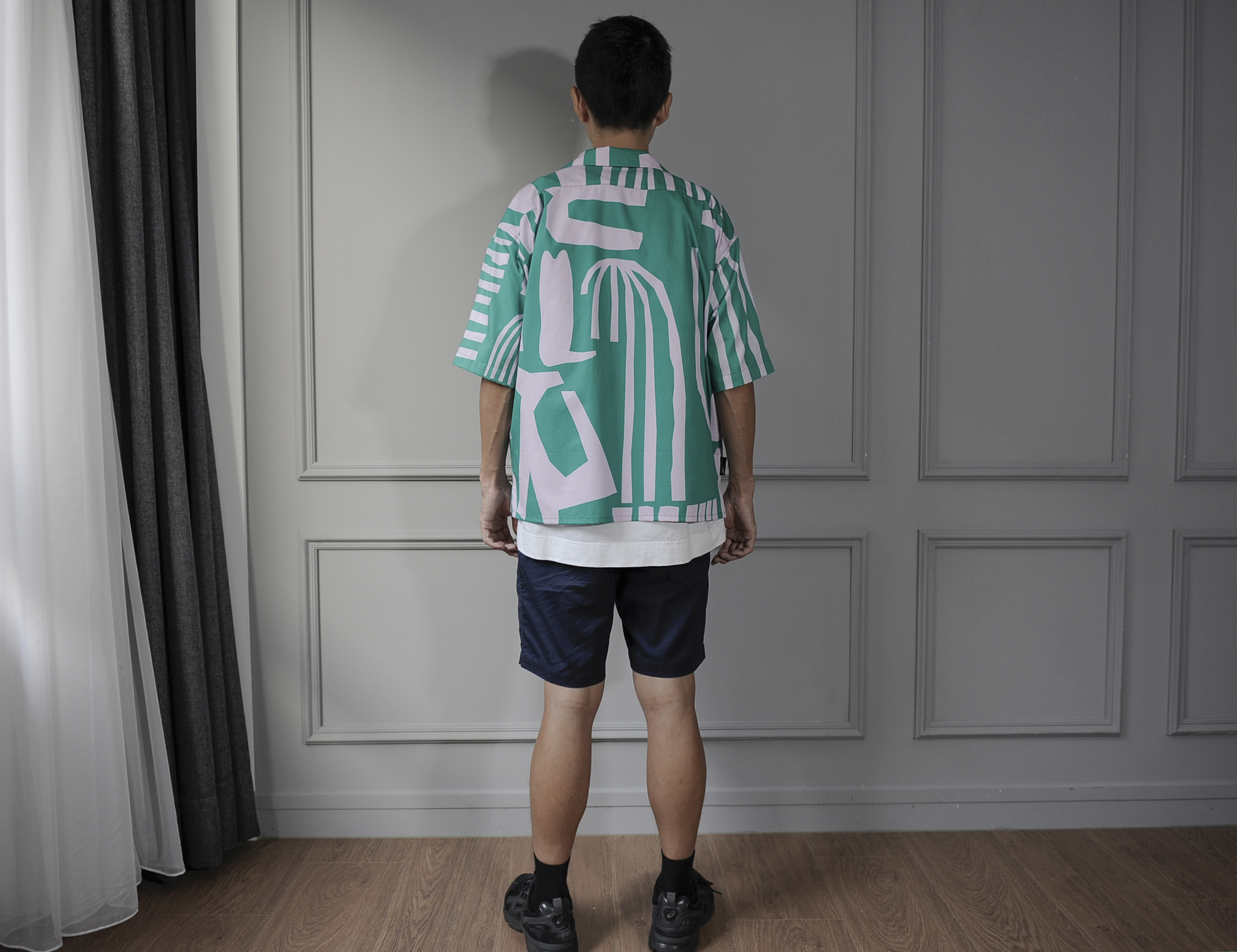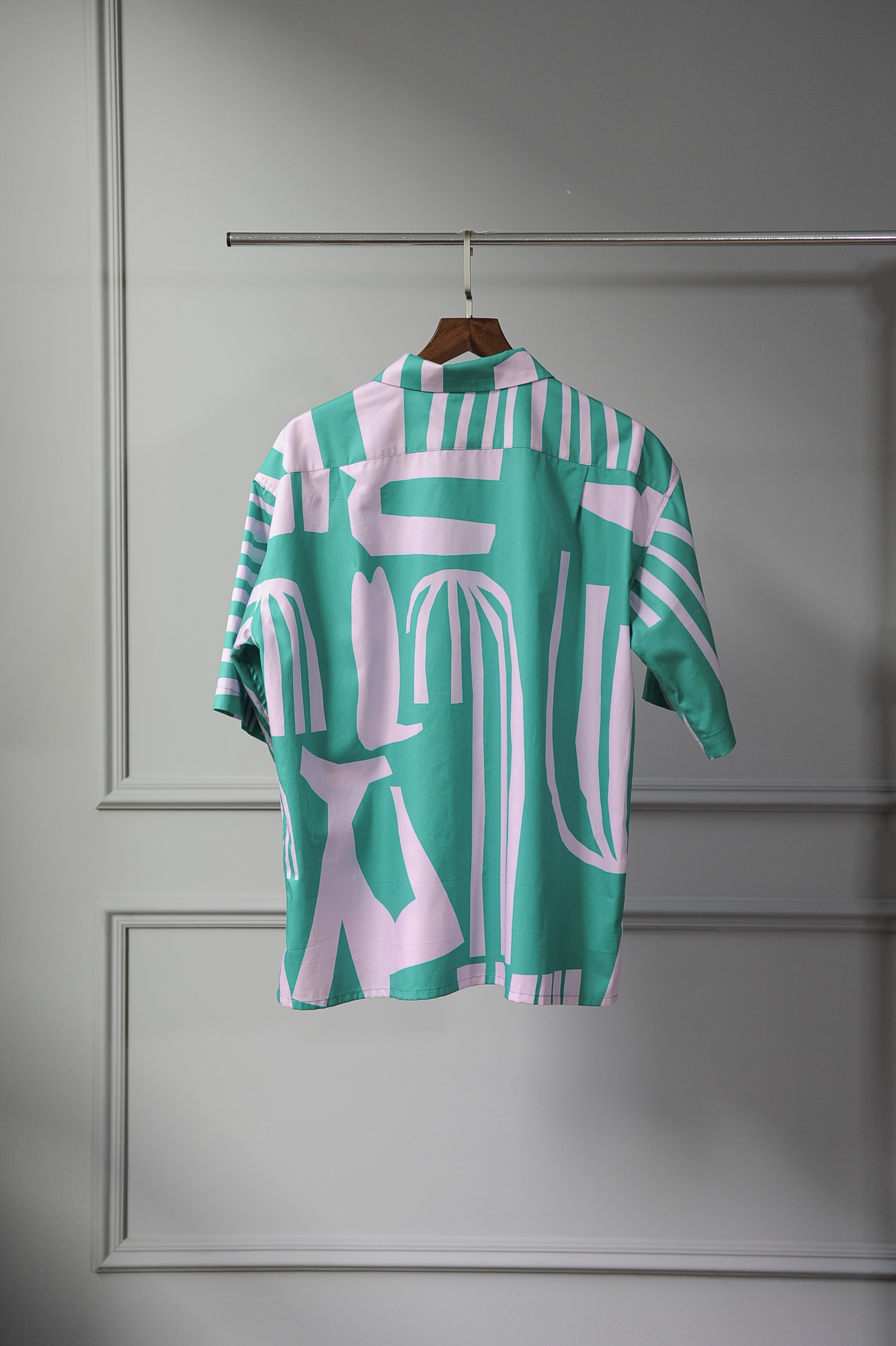 Jianjian's classic print is now available on lustrous mercerized cotton, making our printed shirt accessible to men as well. The unisex design features a wide-shoulder drop pattern, a sleek silhouette, delicate finishing, and an elegant collar, allowing both men and women to express their unique style.