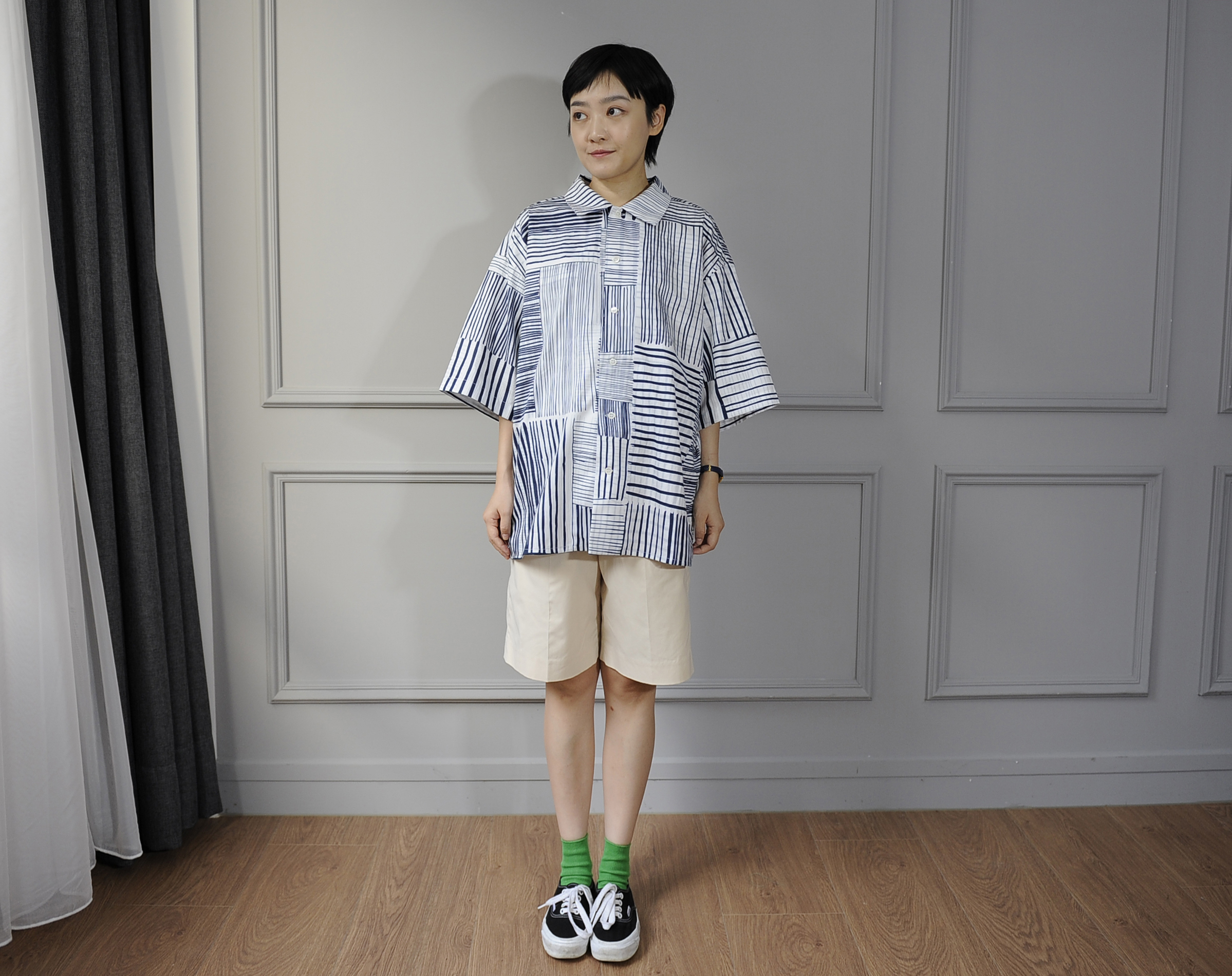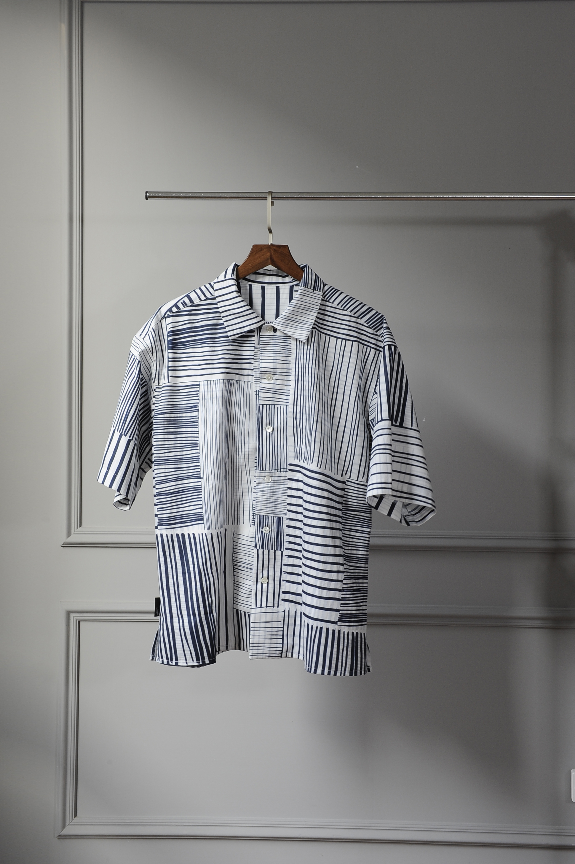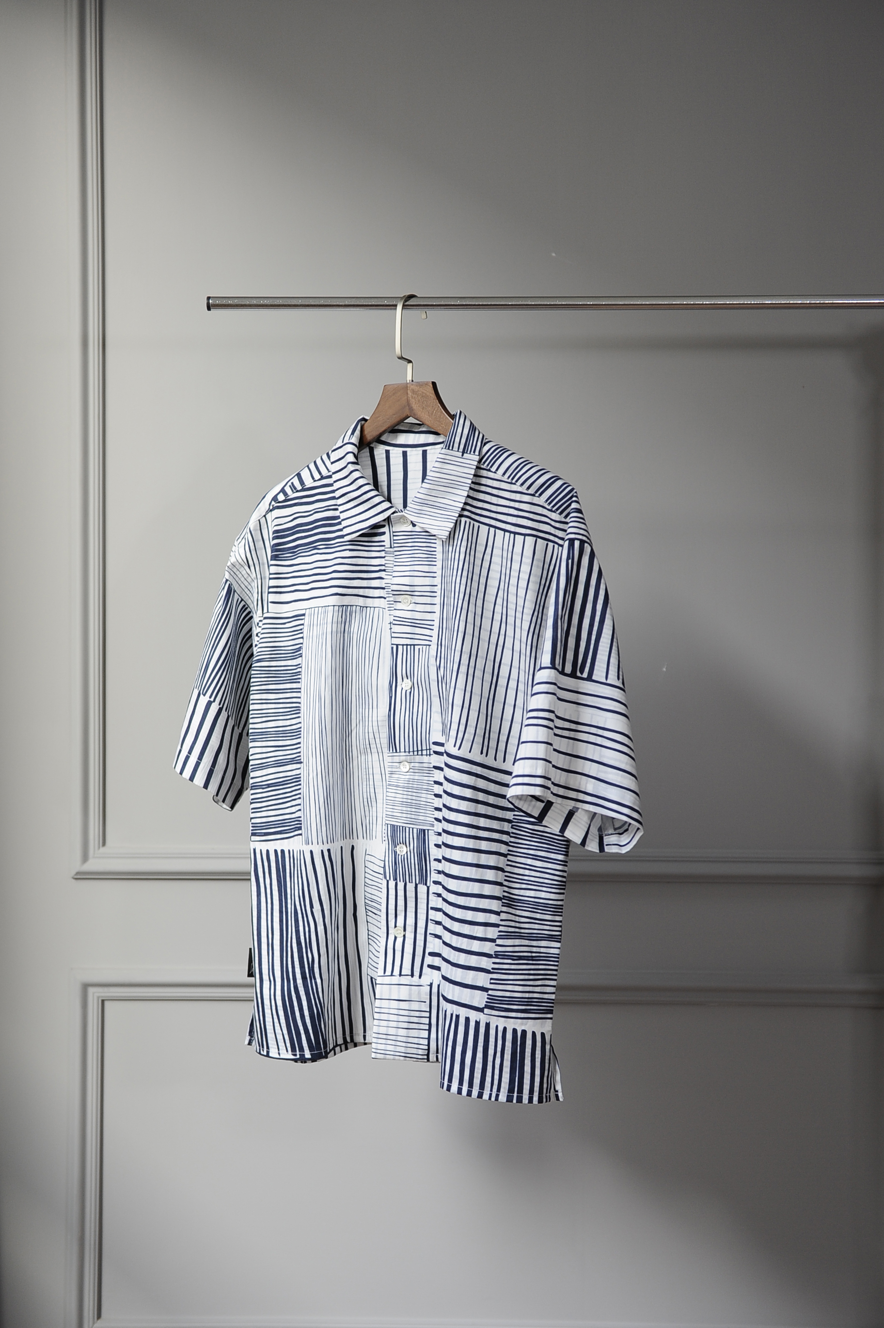 Printed Short Sleeve Shirt / Weave Navy / Free Size
