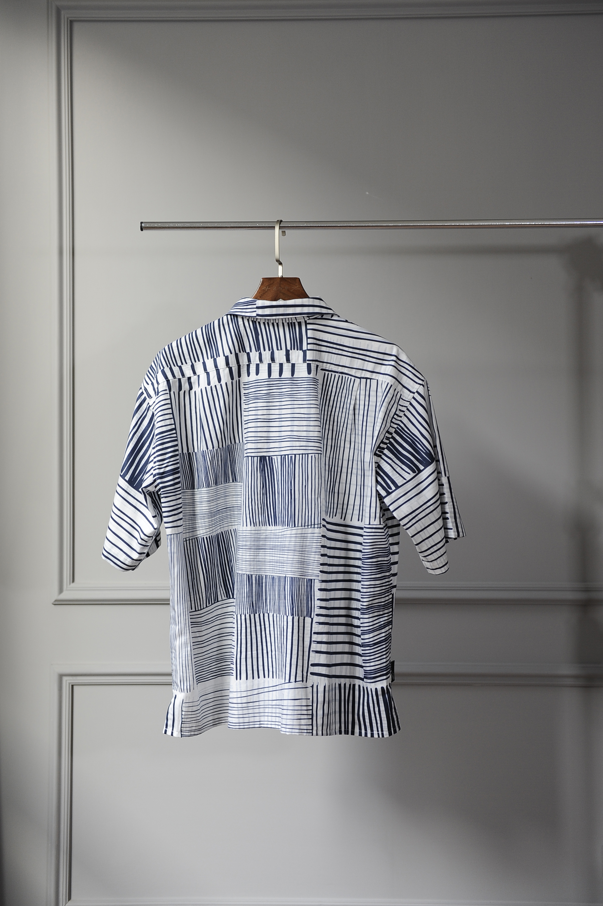 Featuring a simplified classic print on lustrous cotton sateen, our printed shirts are finally available for men to wear. The unisex design utilizes a wide drop shoulder cut, with a clean silhouette, delicate edging, and an elegant collar shape, allowing anyone to express their own style, regardless