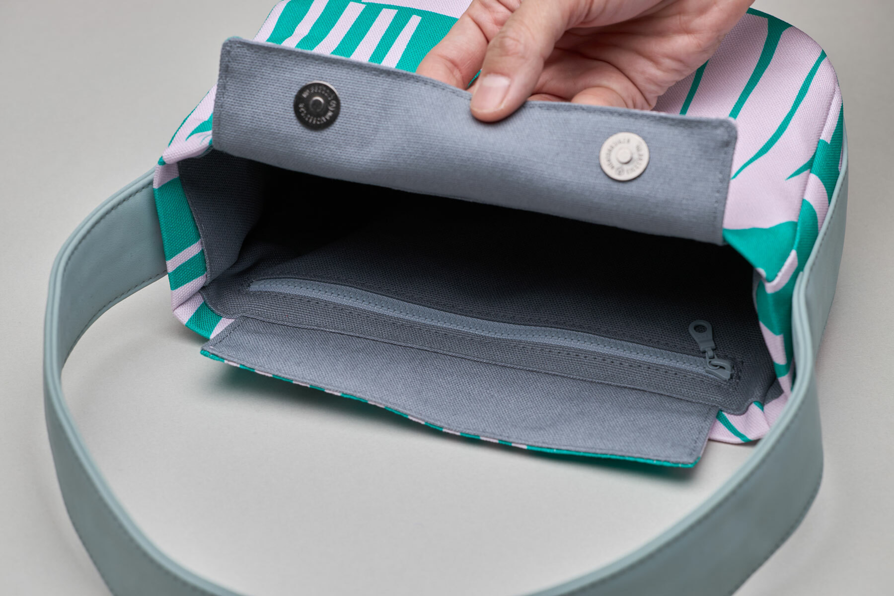 The shoulder strap uses NUPELLE® vegan leather, made from recycled materials: