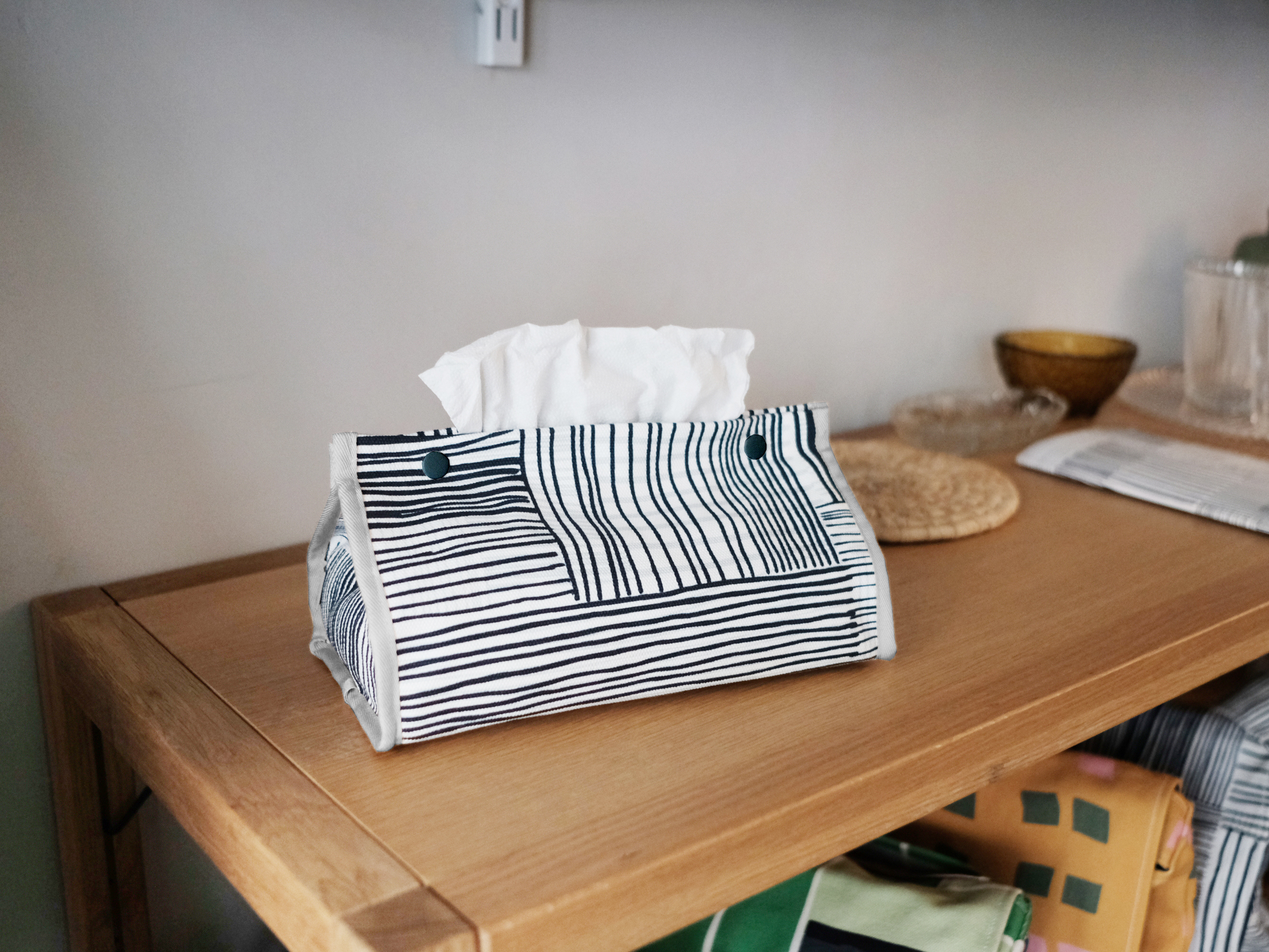 JainJain's signature canvas tissue covers embody both practicality and aesthetics, infusing that extra bit of flair into your everyday life. Whether it's placed on a flat surface, hanging up by the loophole on the side, there will always be a perfect place for it.