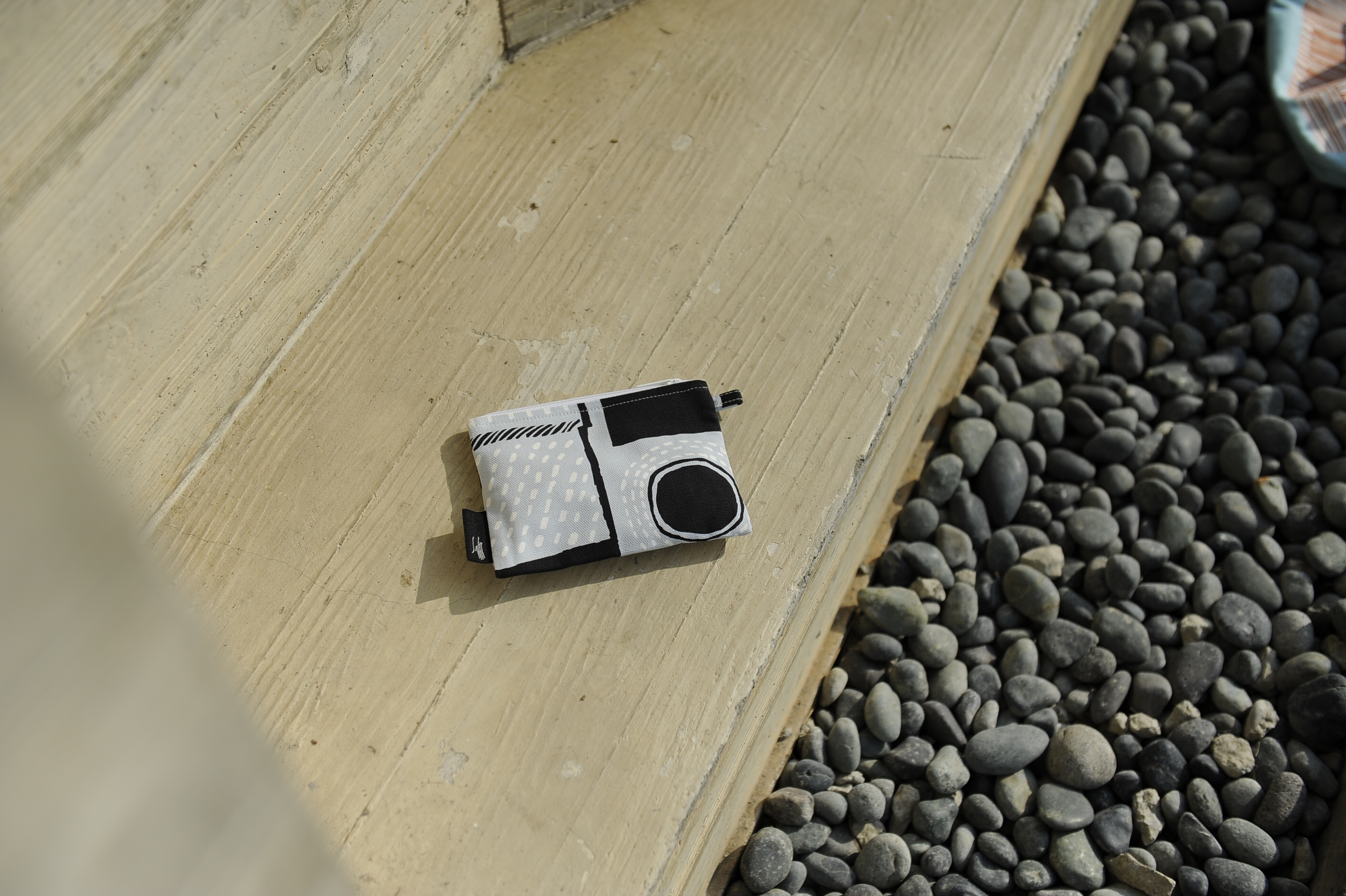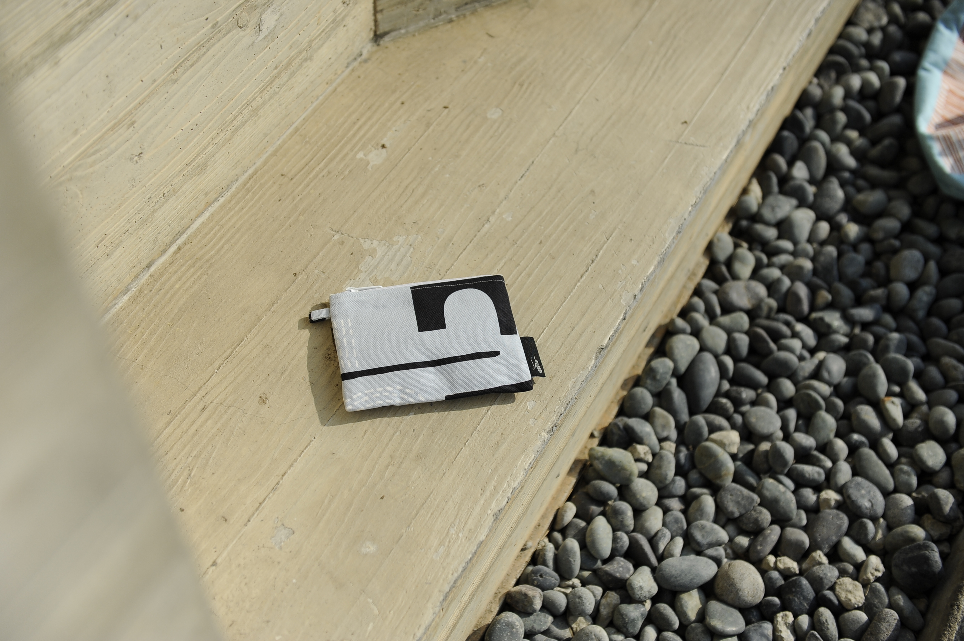 印花零錢包,外層是我們的全新印花「相縫灰」,內裡則是純白色,