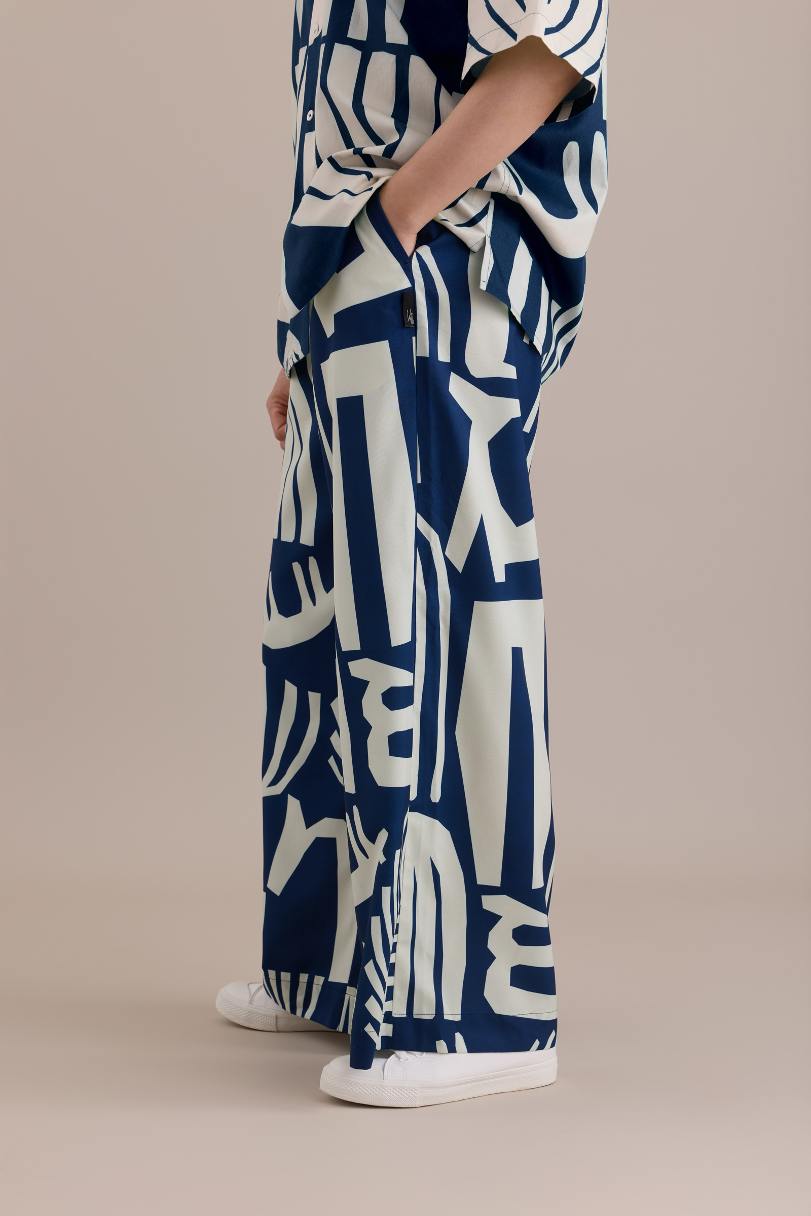 Printed Wide-Leg Pants / Mixed Breed Navy / Free Size