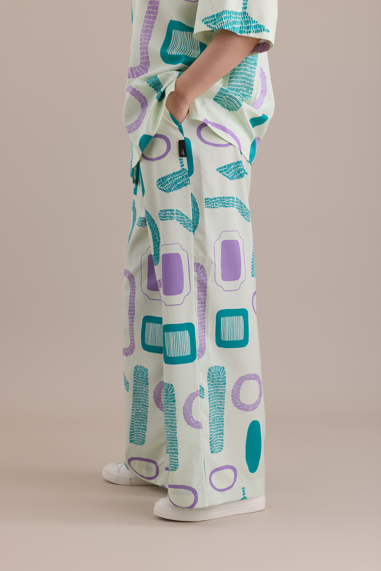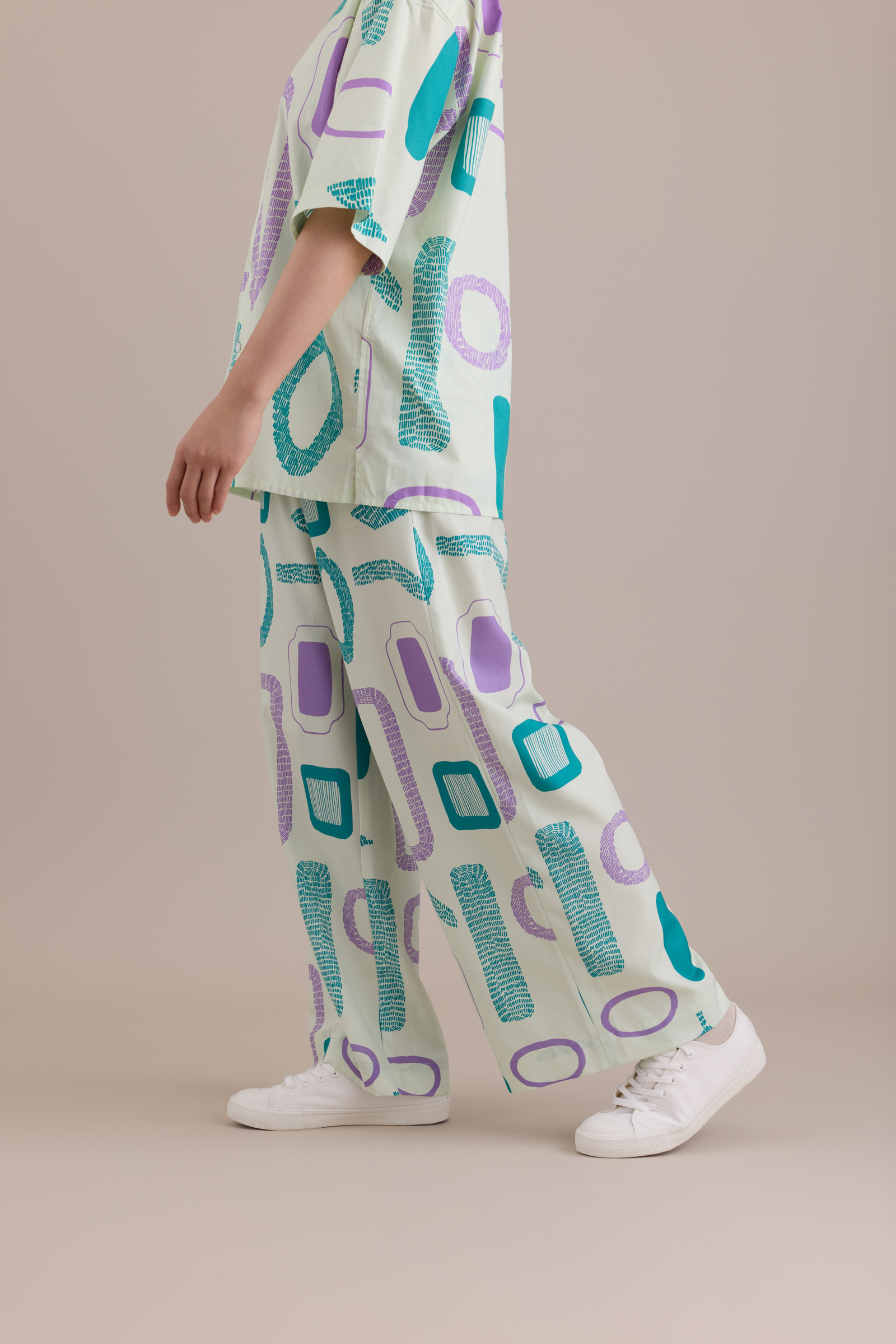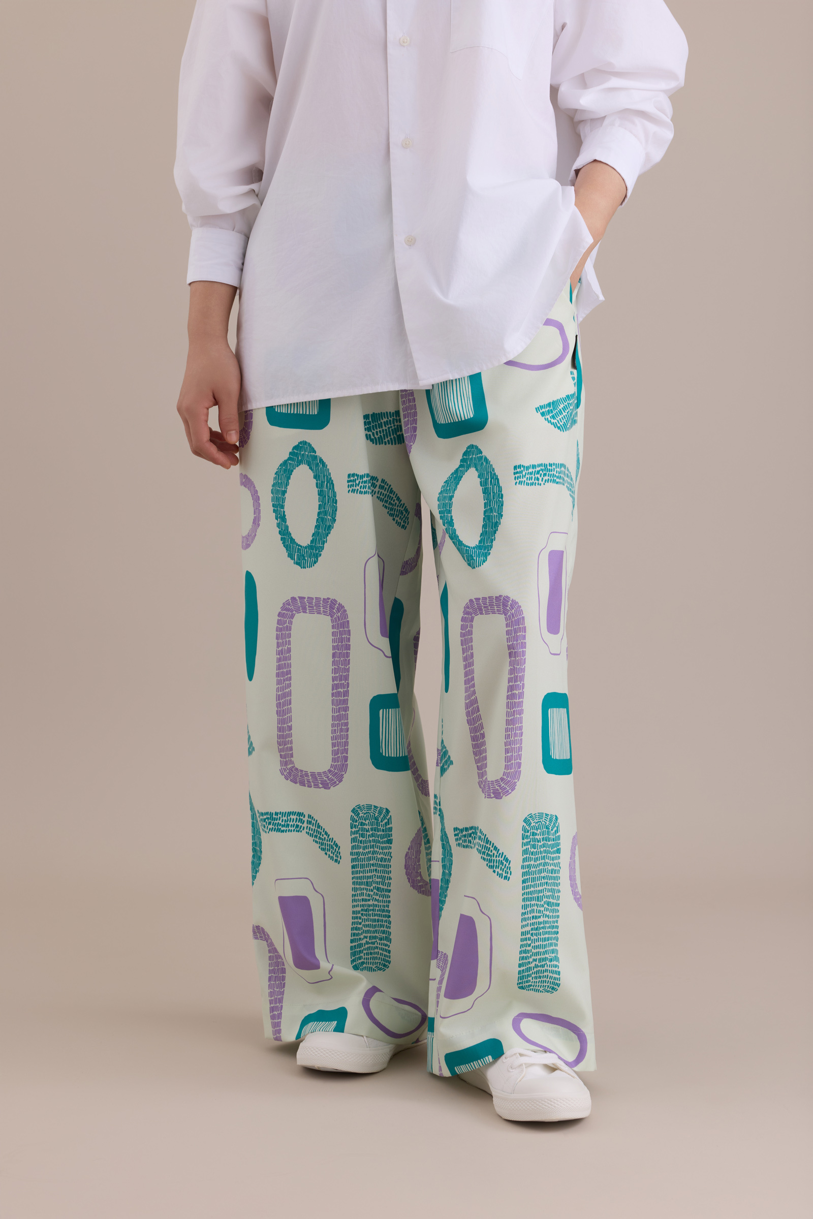 Printed Wide-Leg Pants / Container Apple Green / Free Size