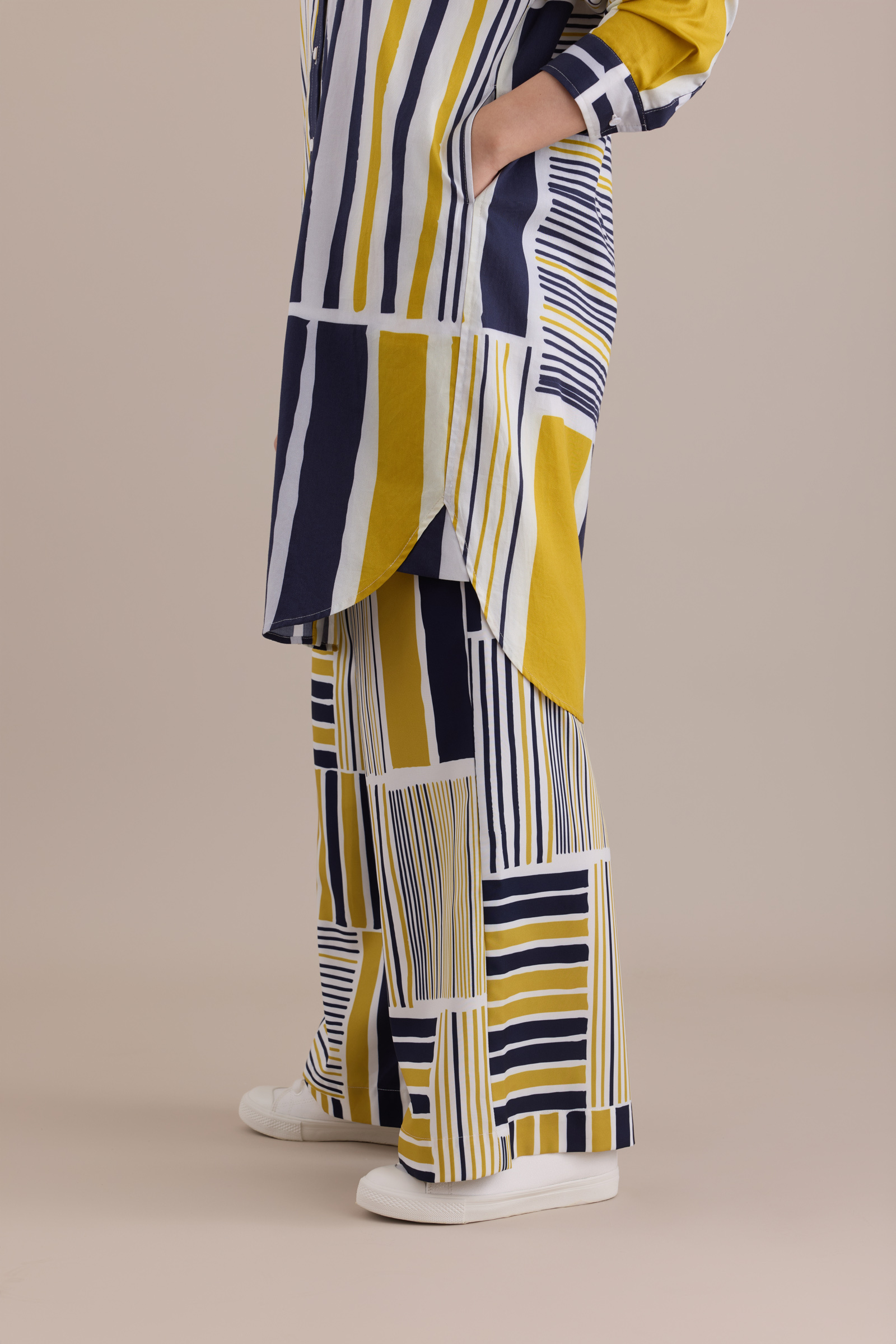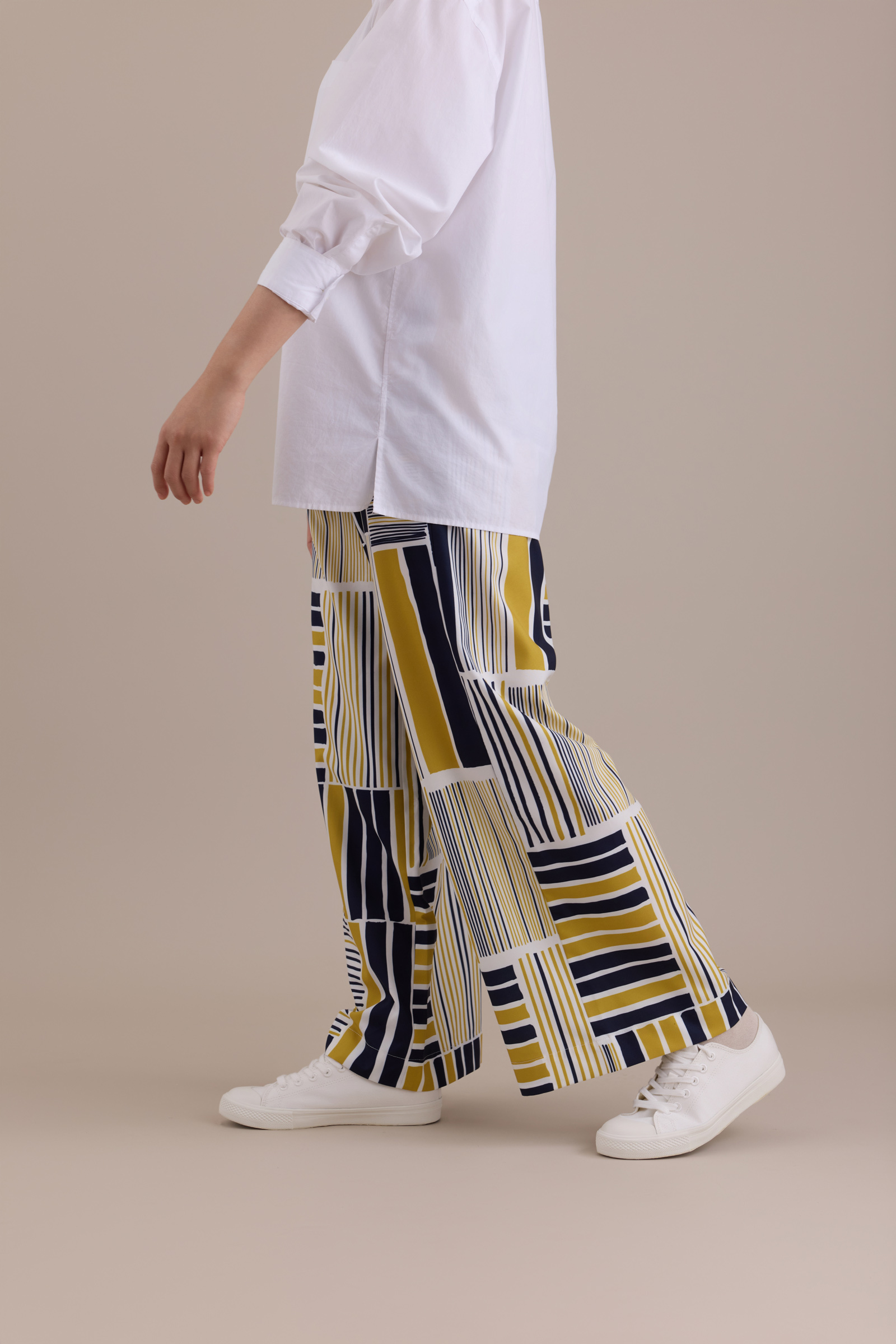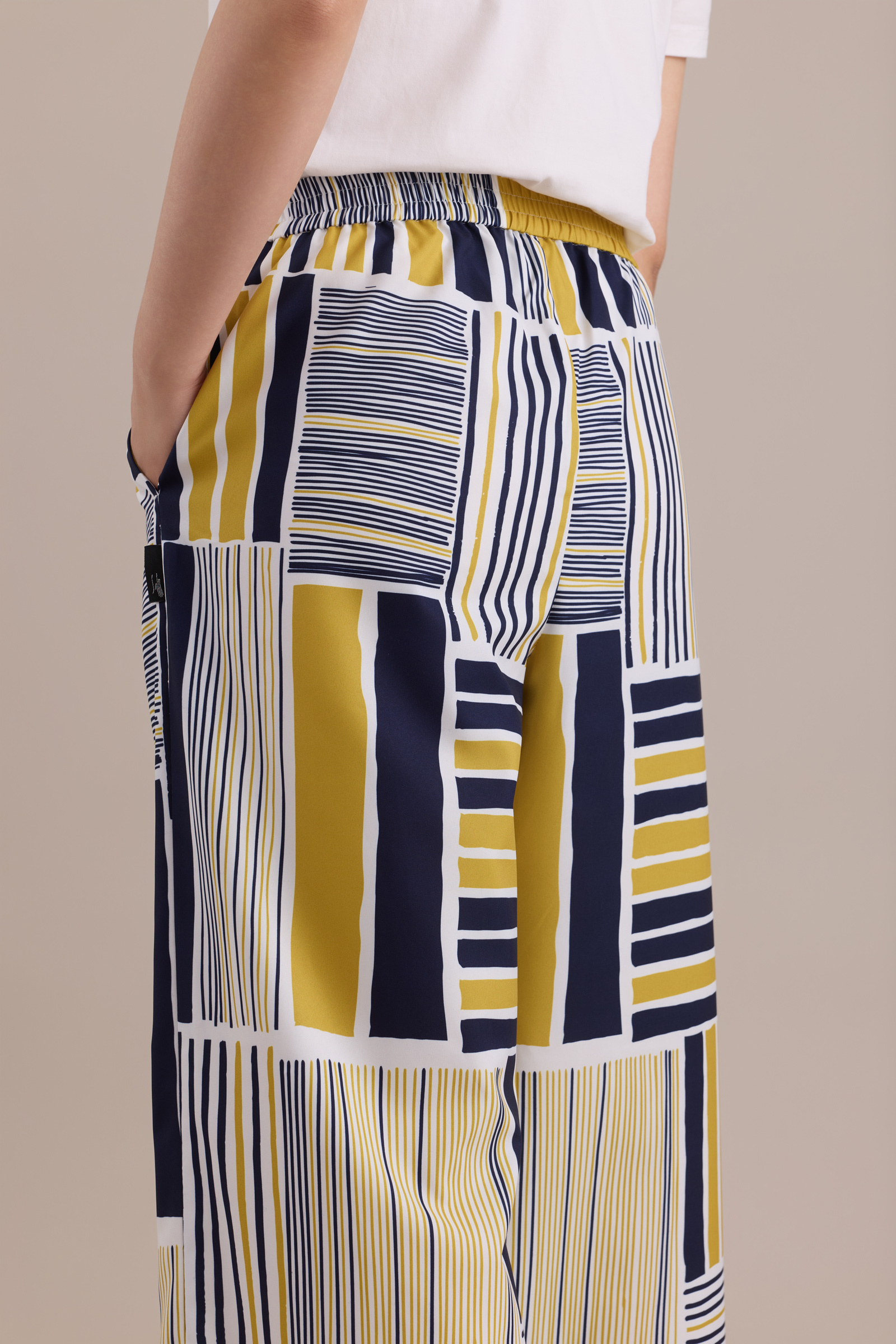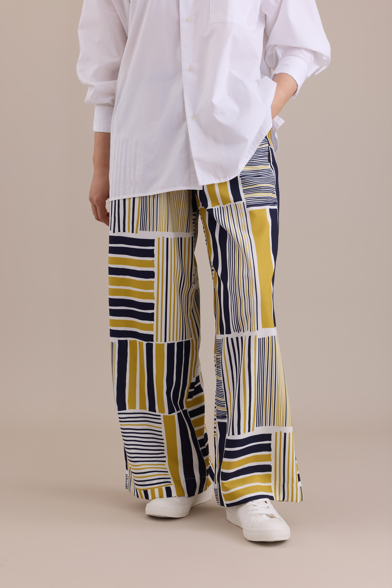 Printed Wide-Leg Pants / Sheet Metal Roofing Yellow & Navy / Free Size