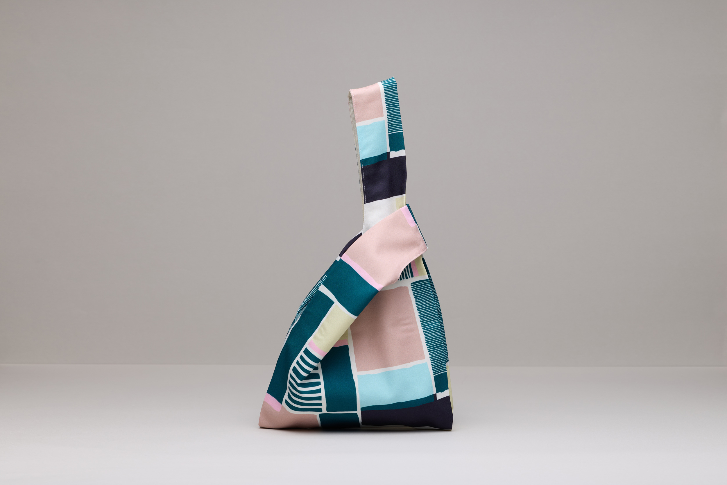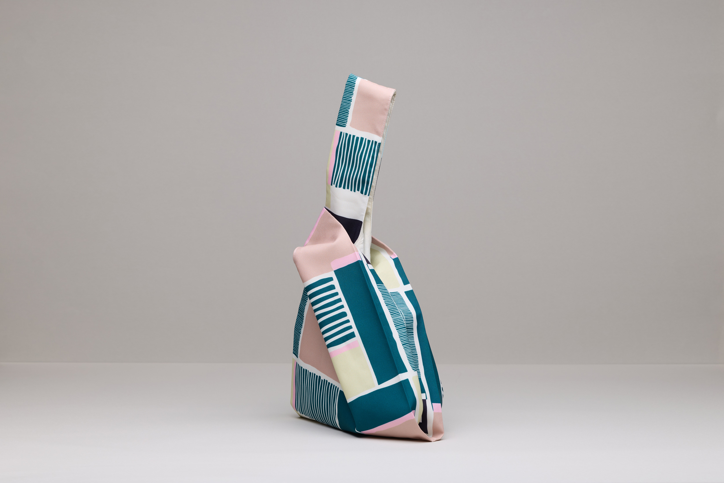 This handbag is inspired by the red-white stripe plastic bags seen quite commonly in Taiwan. The asymmetrical handle length adds an extra design element. Mercerised printed cotton is gentle and fluid, exhibiting a silk-like sheen and soft glow, showcasing elegance and personality.