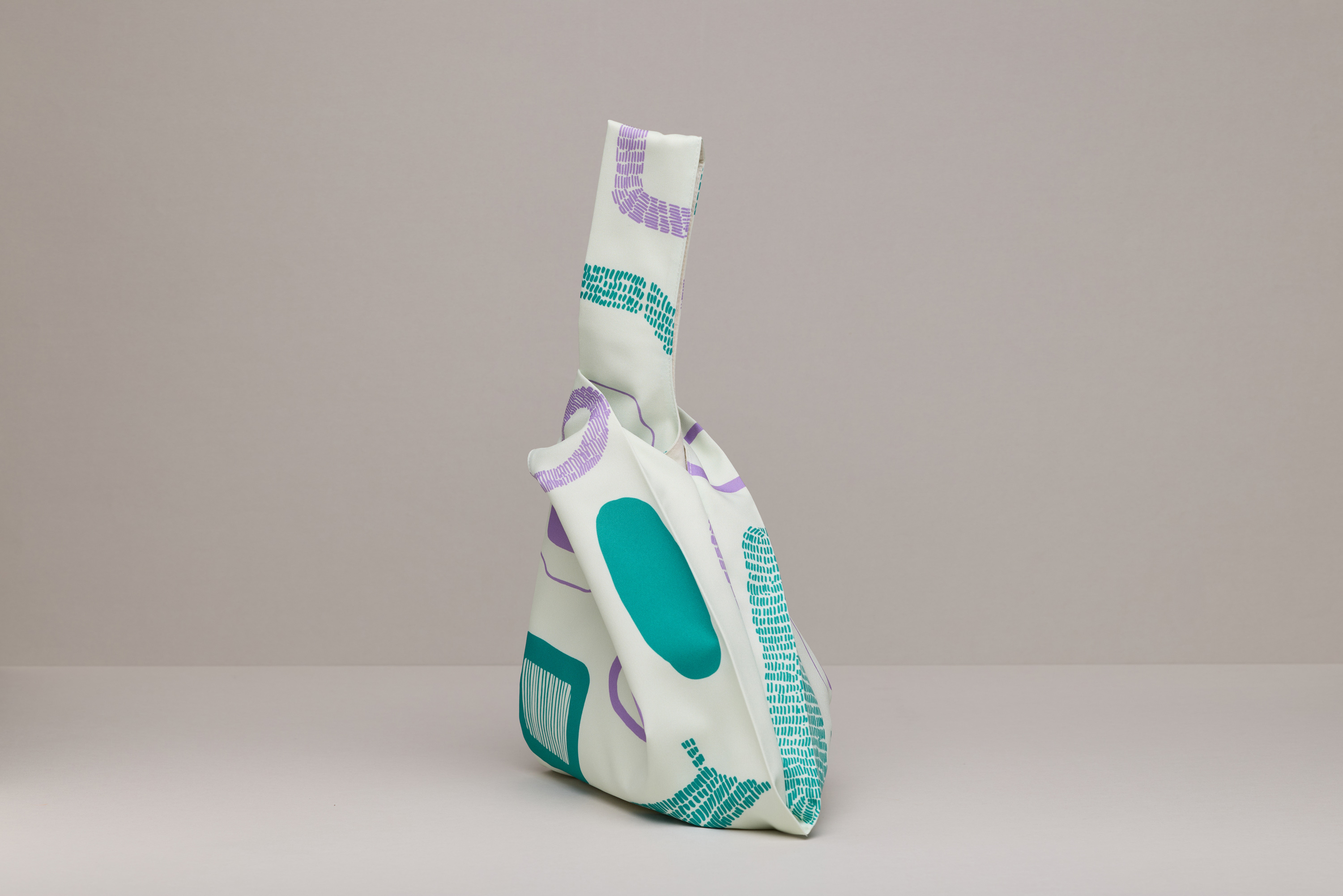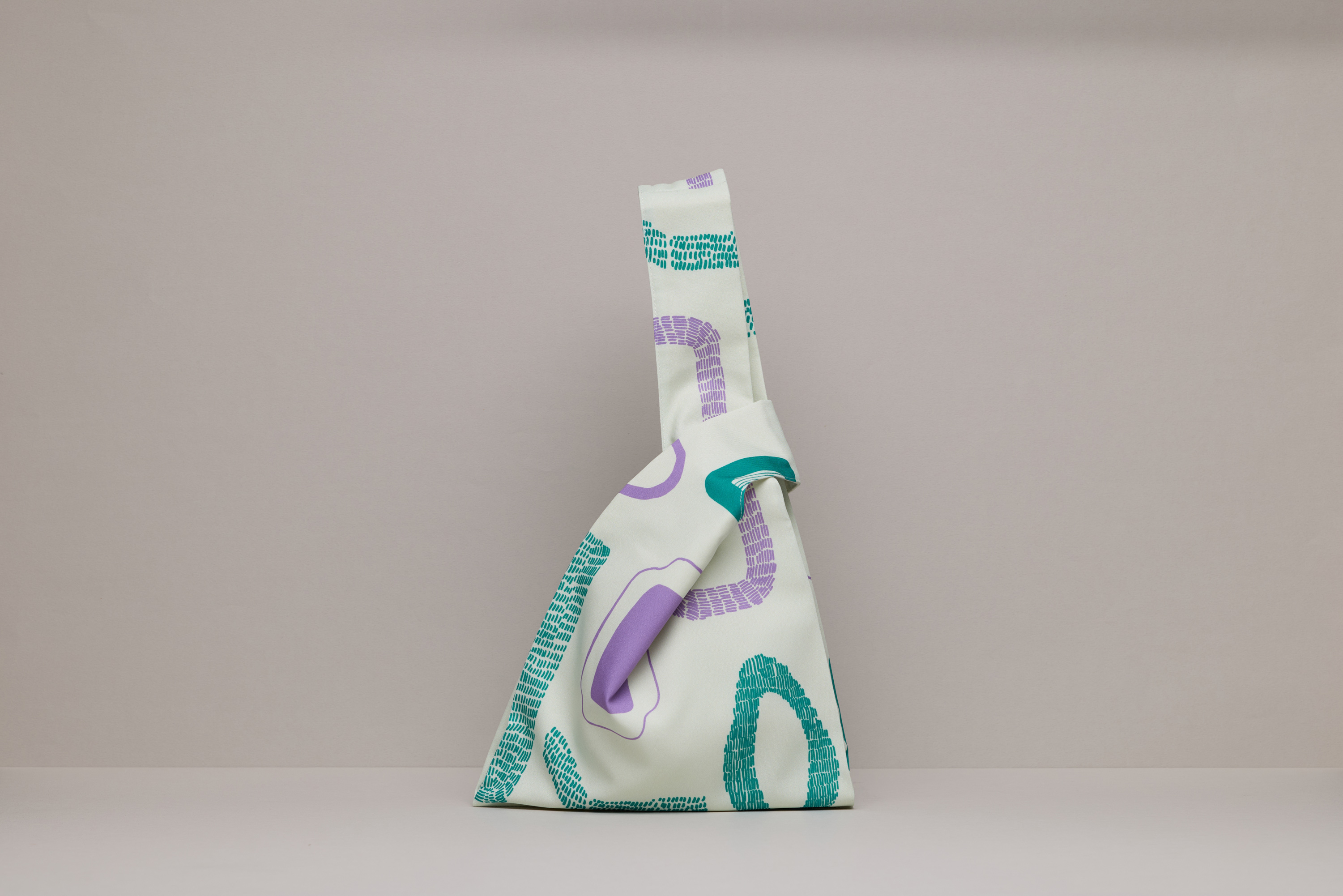 This handbag is inspired by the red-white stripe plastic bags seen quite commonly in Taiwan. The asymmetrical handle length adds an extra design element. Mercerised printed cotton is gentle and fluid, exhibiting a silk-like sheen and soft glow, showcasing elegance and personality.
