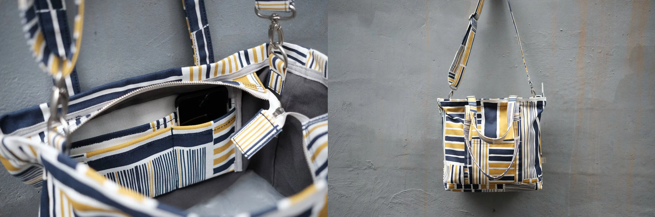 目前兩個尺寸的經典托特包共推出四個花色:鐵皮屋黃藍、編織深藍、三重黑灰、違章藍綠,減簡最經典的花色讓你能夠一次擁有。