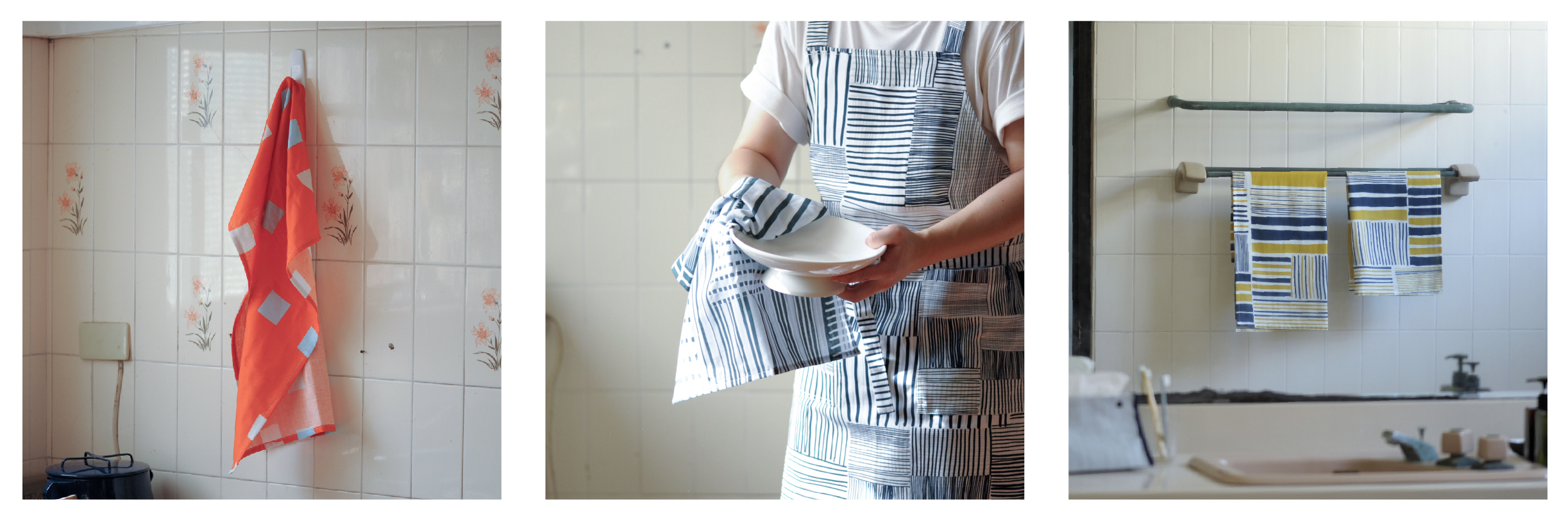當布料正式完成時,我們希望它能成為生活中不可或缺的一塊布,因為疫情而開始了家居生活的我們,廚房成了最常進出的地方,無論擦拭水漬、鍋具隔熱、遮蔽廚房家電灰塵,甚至是陽台上的擦拭布,這塊布料都能完美勝任。