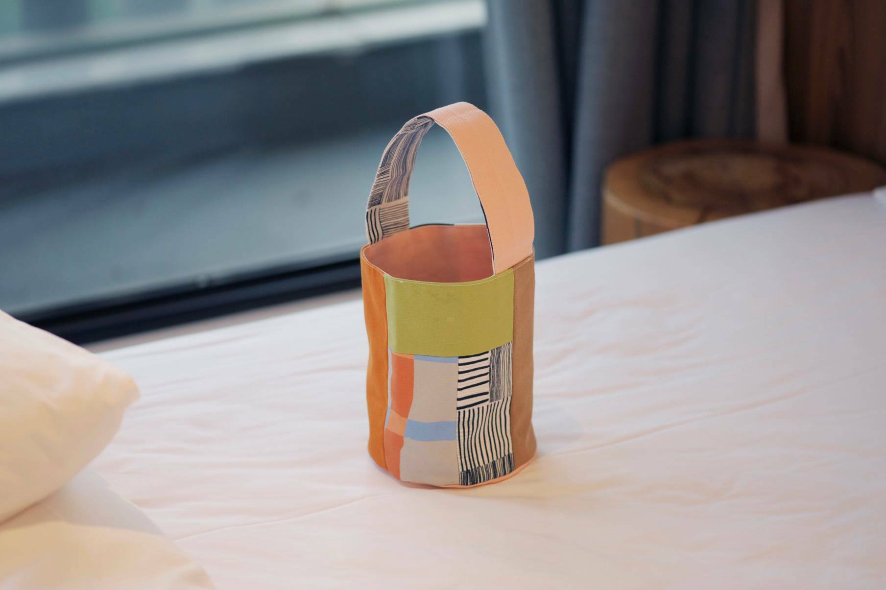 第二波在店面、官網都有不同優惠方案,這次要祭出的贈品(誘因)是我們小量製作的拼色水桶包,特別的是,我們運用了商品布料裁剪後的角料,讓這些小碎布塊都能有嶄新的生命,相對也就減少了很多浪費,因此每個拼色水桶包都會有不同的樣貌,在活動期間不論店面或官網,消費滿3000即贈送一個獨一無二的拼色水桶包喔。