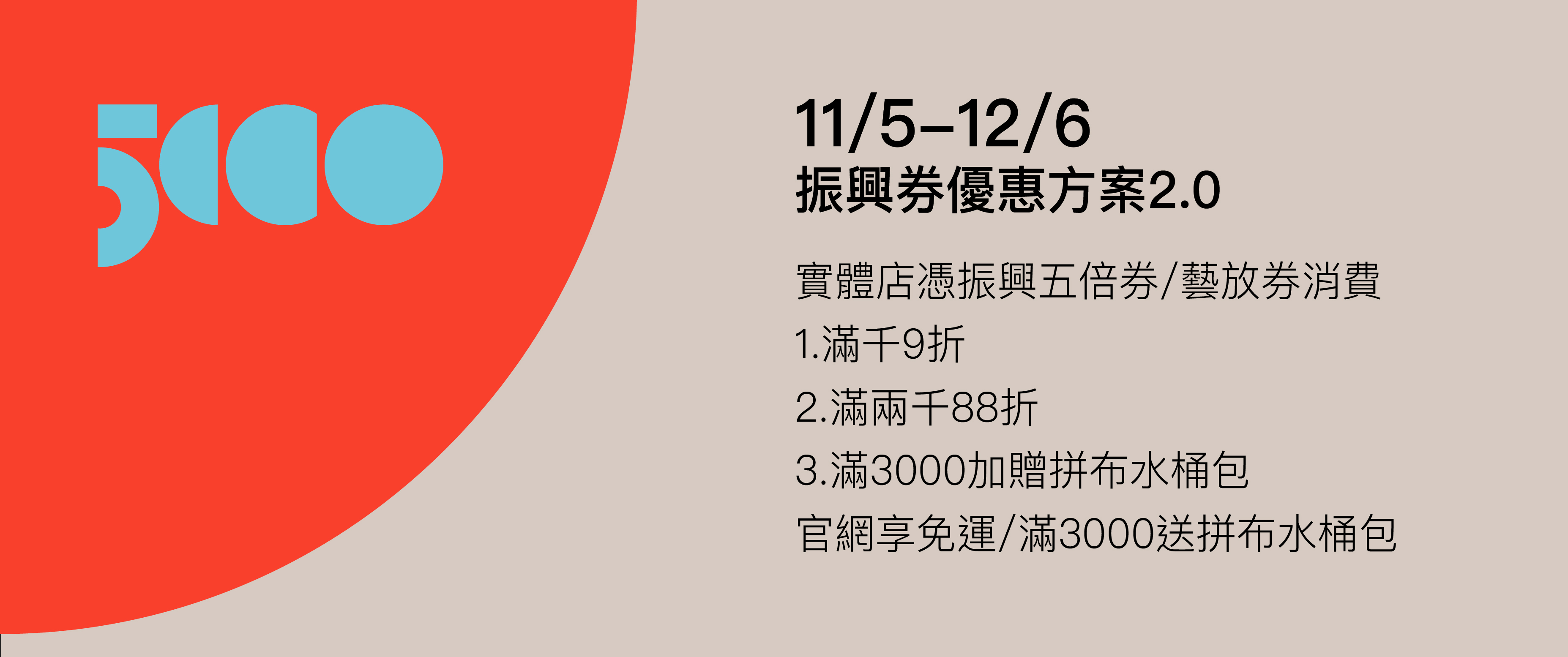 店面優惠:使用五倍券或藝Fun券消費滿千九折,滿2千88折,滿三千加贈送拼色水桶包