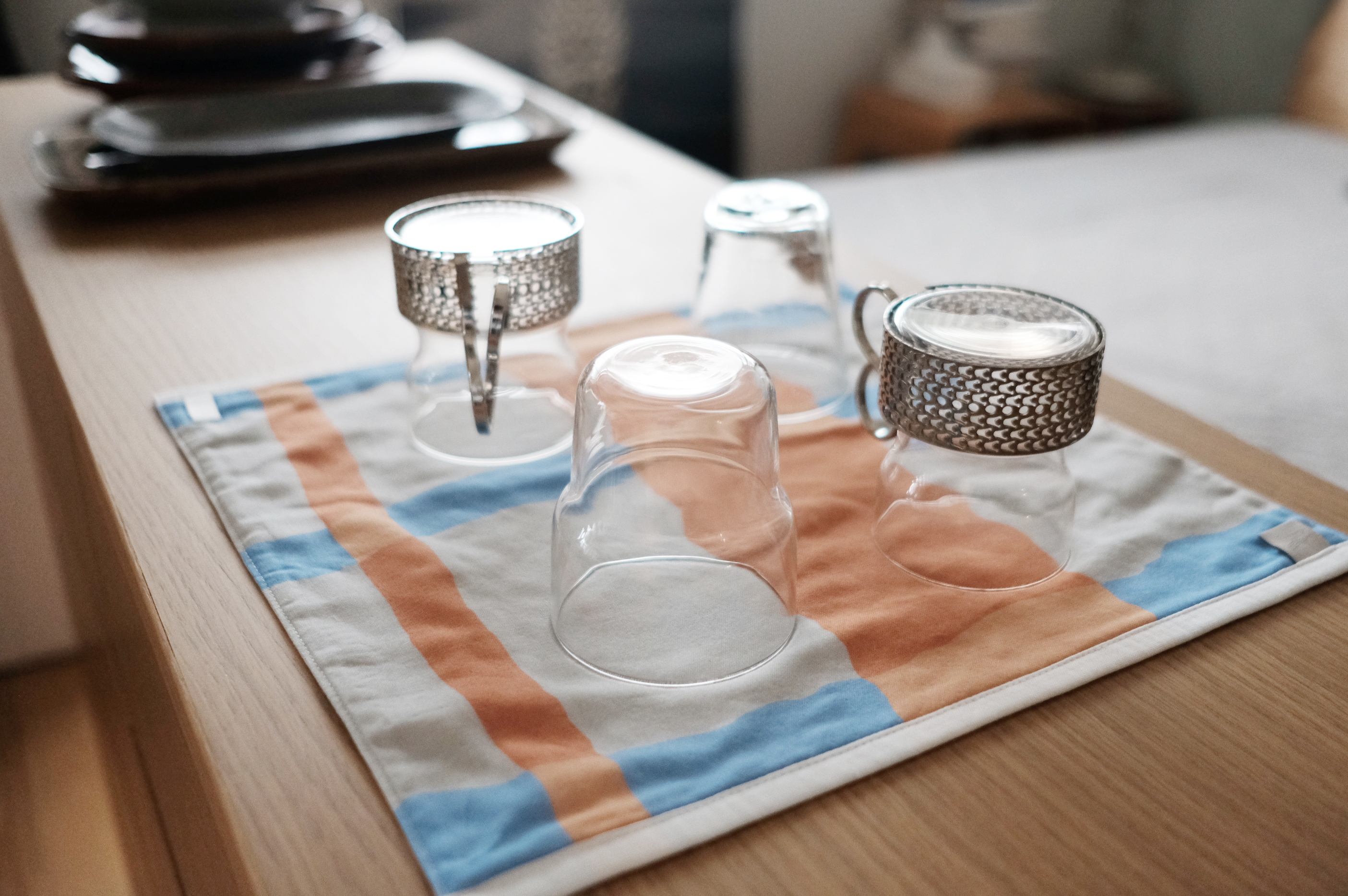 除此之外,凡購買任一旅行系列商品即贈新品「茶巾」,減簡的布花一直是家的美好風景,我們選用了品質優良的二重紗布料,具備良好的吸水特性,加上我們最愛的雙色搭配,誕生出美麗的純棉茶巾。