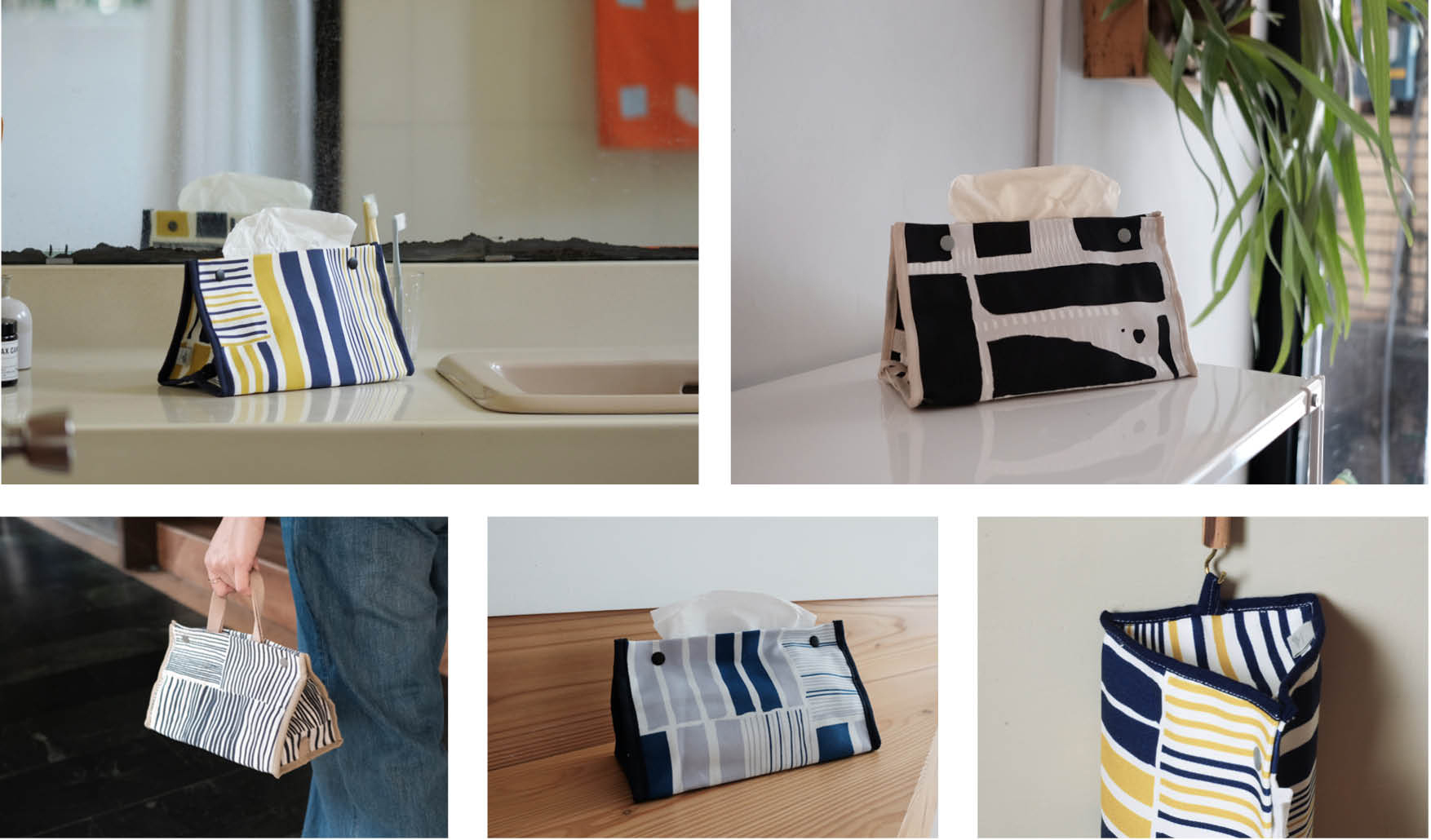 兼具實用性及美感的純棉印花帆布面紙套,讓原本抽取式面紙的塑膠套外包裝改頭換面,心情也跟著煥然一新。