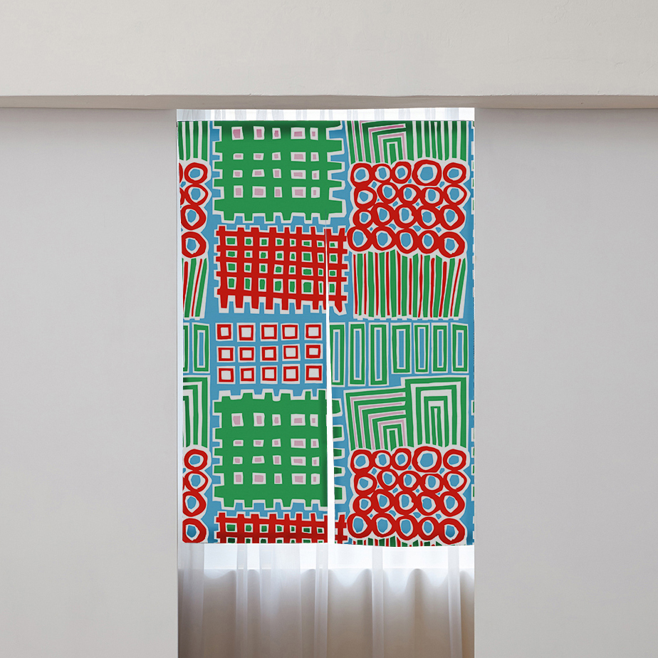 這塊布花裡,每一個元素都代表我在這經歷的一切,十字型結構,像地圖,又象徵都更時被拆除掉的老樓,土地上被迅速拔起的鋼骨結構取代。