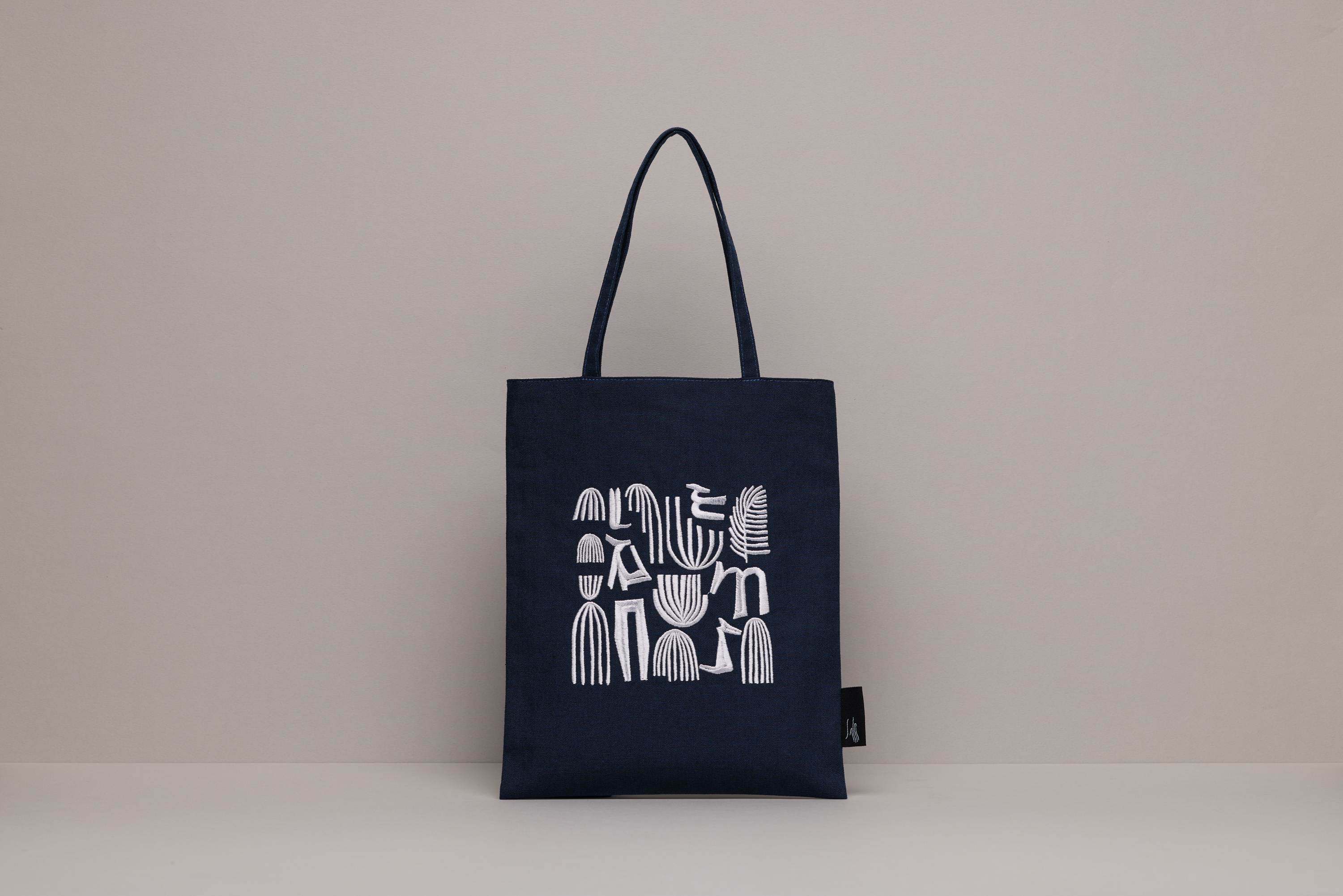 色彩 / 藏藍色帆布、銀灰色刺繡