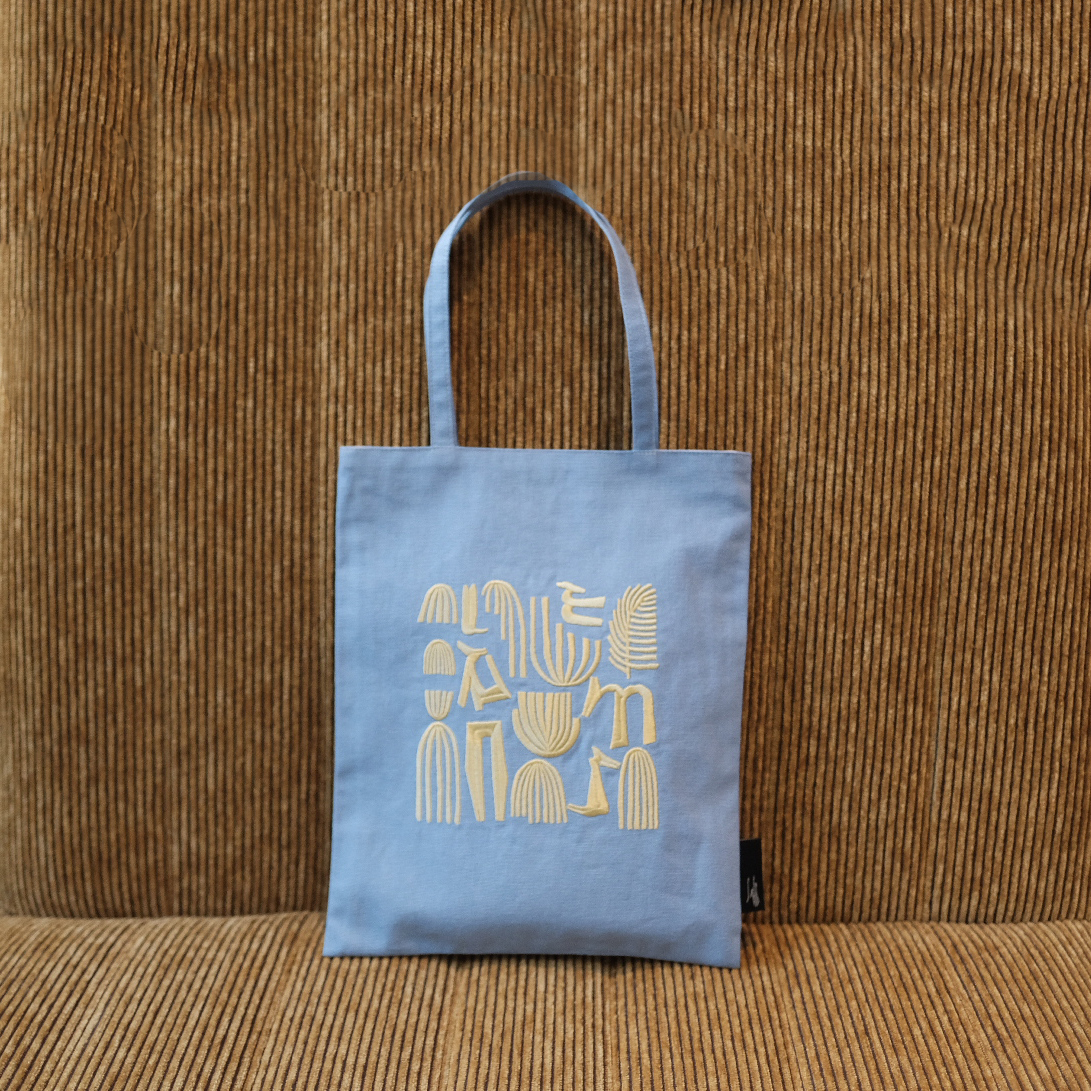 一個恰巧能裝下你手邊的那本25k讀物的小書袋, 有了精緻的改版,好像更優雅了一點, 我們把米克斯的印花繡在上面, 提著去逛街、喝杯咖啡,過一個悠哉的下午剛剛好。