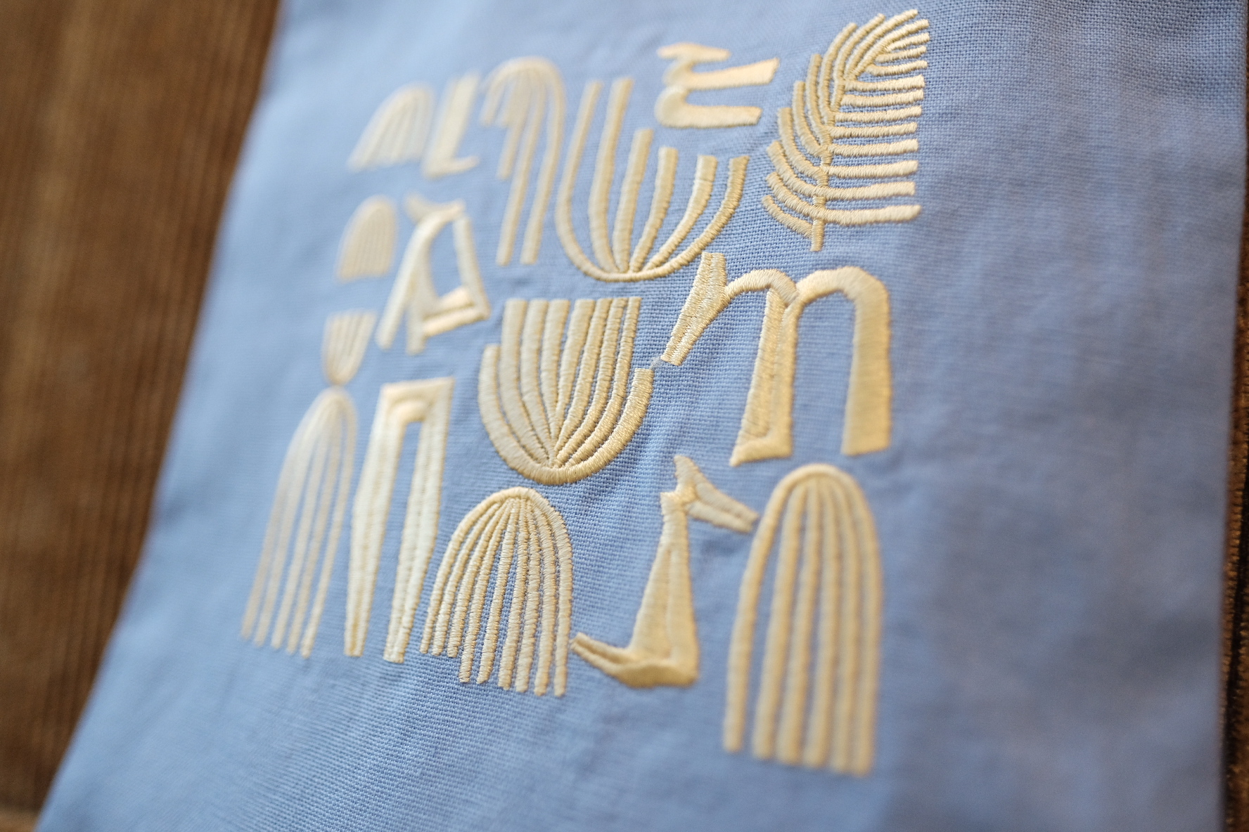 色彩 / 水藍色純棉布、檸檬黃色刺繡